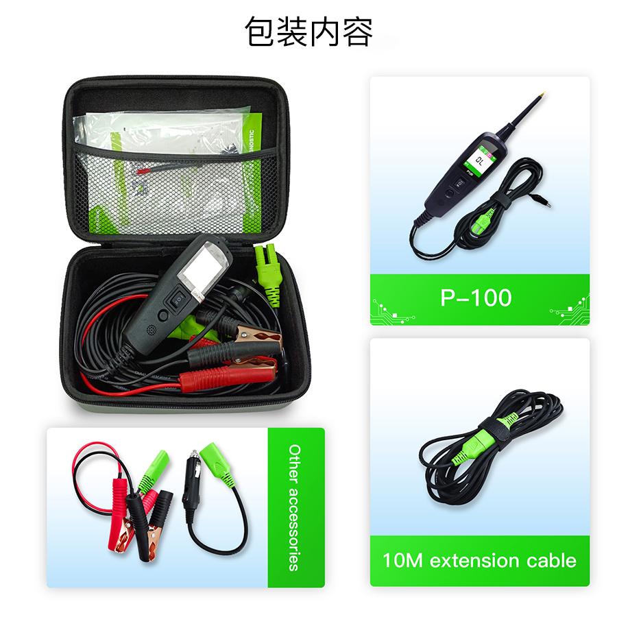 Test trailer lights and connect a 10M extension cable to test cars or trucks;